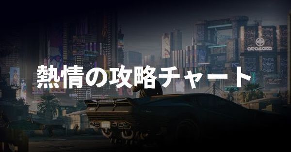 サイバーパンク2077(Cyberpunk)のサイドジョブ「熱情」の攻略チャートを掲載しています。依頼の受注場所など気になる方はぜひご覧ください。