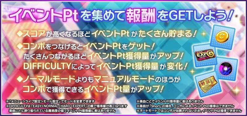 - コンボポイント:難易度とコンボの達成状況により変化(最大200)