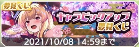 | キャラピックアップ夢見くじ 10月08日 15:00 ~ 10月23日 14:59 | ||
