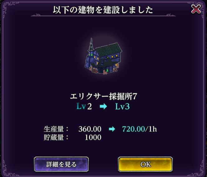 建築レベルが上がることで生産されるアイテムの量やパラメーターの上昇率が変わるのでこまめに上げていきましょう。