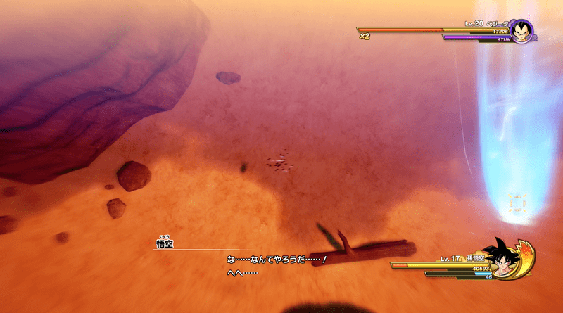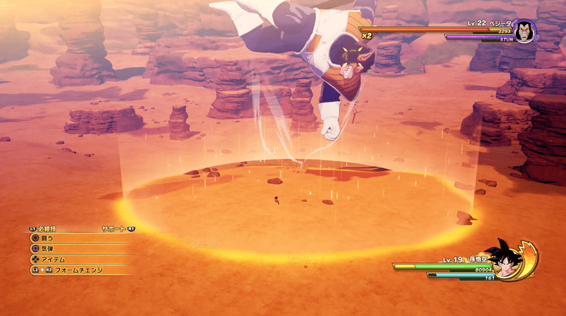 ベジータ・猿が飛び上がったあと、地面にサークルが表示され、サークル内にいるとダメージを受けてしまいます。