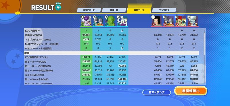 4620日まえ ID:euwf7l8xフリーザ使ってたけど、試合開始から味方悟空雑魚無視凸レベル1で敵凸即死×6回、反対レーン常に3人で1人で任される×4試合だったからもう土日はやらん…w