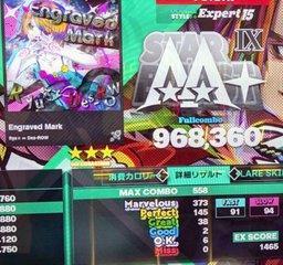 (参考)ノーツ数600弱の譜面では、フルコンボ970kが取れればIXゲージでの狙い目になります。