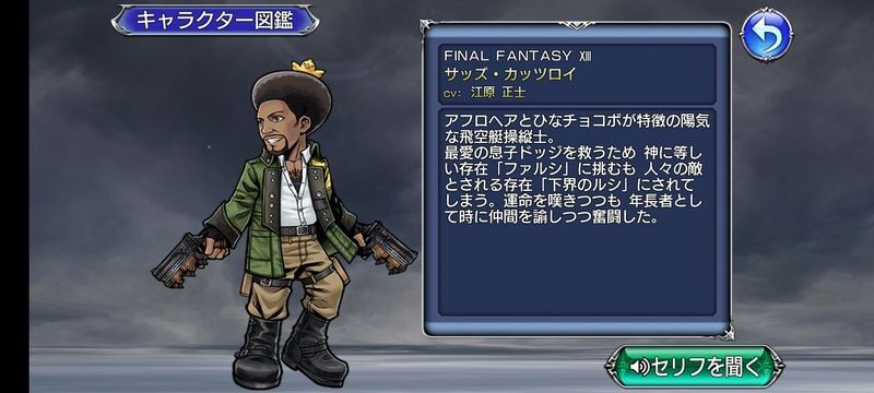 アフロヘアとひなチョコボが特徴の陽気な飛空艇操縦士。