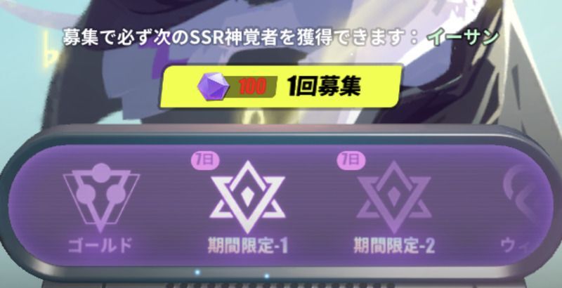 | 初心者ガチャ | ゲームを始めて最初の10連のみ トウ・シェンかリー・リンが確定 |