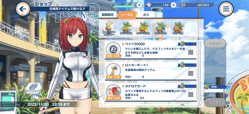 キャラの衣装を別のキャラに着せることが可能で、別のキャラの衣装を解放するときにロッカーキーが必要になります。