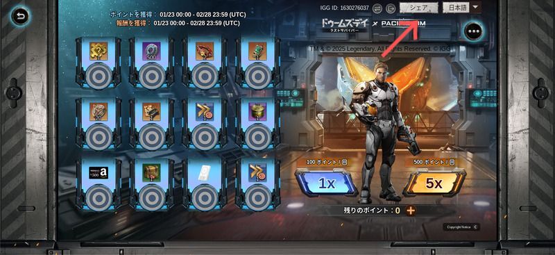 ゲーム内のIGGIDと連携し、ページをシェアすることで、次の報酬を受け取ろことができます。