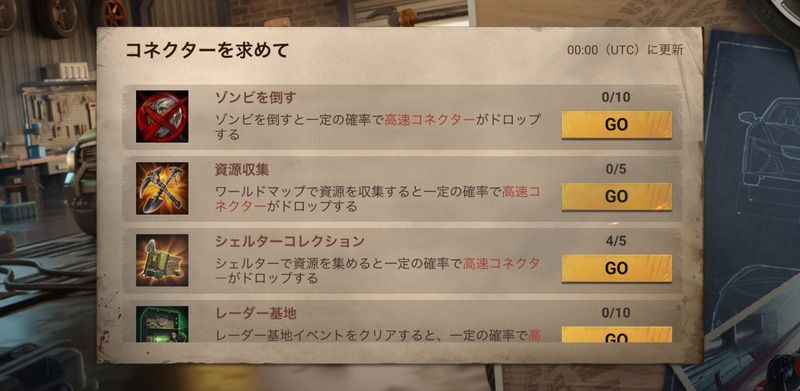 ミッションをクリアして「高速コネクター」や「改造パーツ」などの報酬を獲得することができます。ミッション内容は部品の解放や装置のレベルアップ、ハイカーボンスチールの使用などさまざまです。