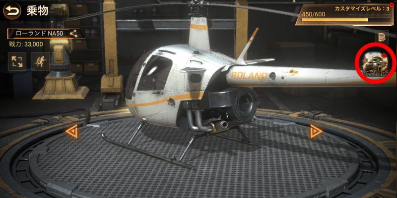 カスタマイズレベル5まで上げ報酬を獲得するとワークショップが利用可能になります。