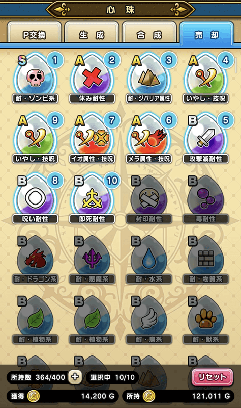 不要な心珠は売却することでゴールドと交換できます。