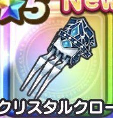 ![]() クリスタルクロー | ・最適性武器 ・最大攻撃力+179 ・物質系へのダメージ+10% ・威力300%のゴッドスマッシュが強力 |