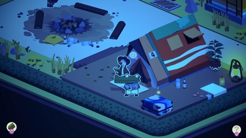上へ進み、キャンパー3の外にいるヤギに話しかける。