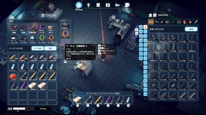 「トーテム:空間耐性Ⅱ」である程度対策可能だが、HP減少のデメリットもある。