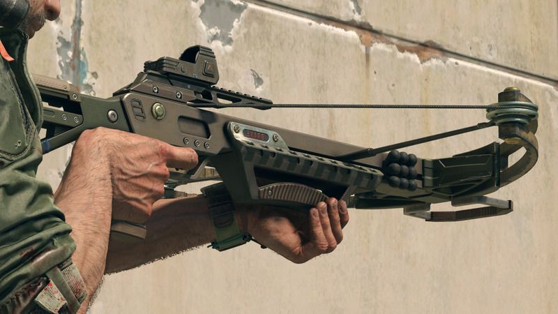 クロスボウは弓と比較するとダメージが非常に高く、銃火器のリボルバー(RV)やマークスマンライフル(MR)に迫る威力を持つ。