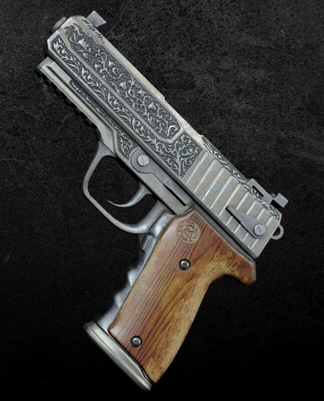 フレーバーテキストの通り、高級そうな木製グリップパネル(取っ手の左右に取り付ける板)を装着している。