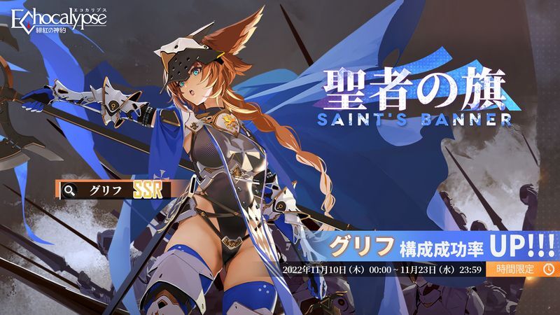 サービス開始から8日以上経過したサーバーにてグリフピックアップガチャが開催。期間限定キャラにつき、イベントガチャ期間内でのみ獲得可能です。