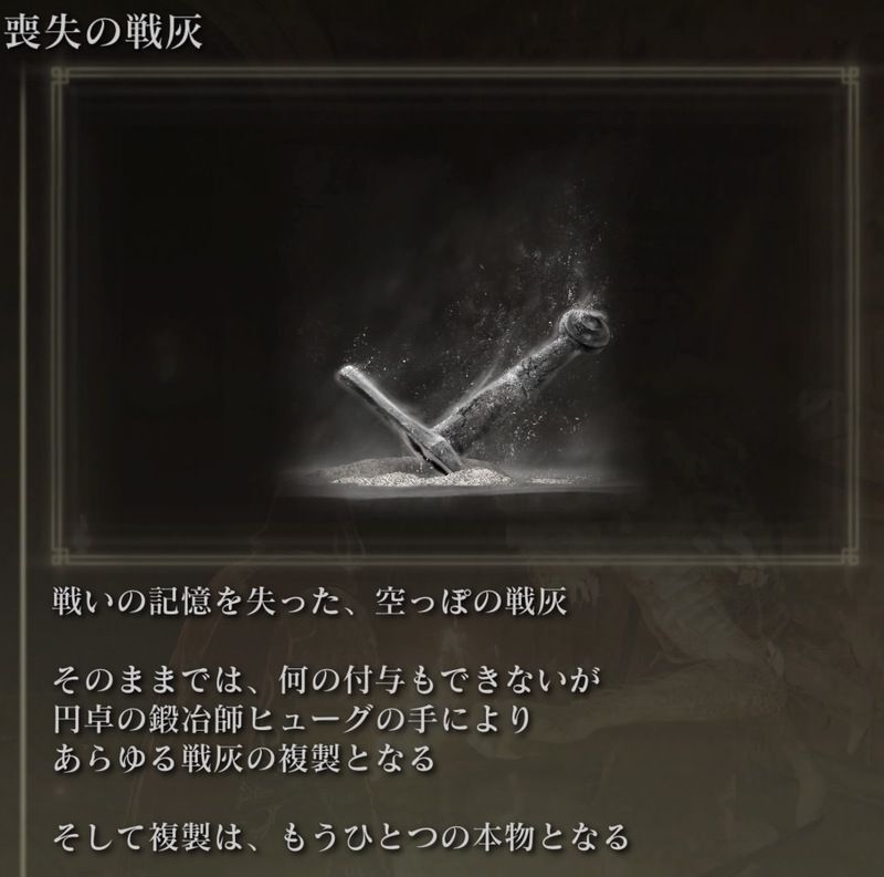 複製には専用アイテム「喪失の戦灰」が必要となります。