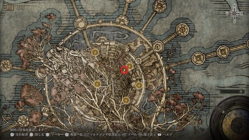 祝福「星砕きのラダーン」の北にありますが、ラダーンと戦うフィールドなのでラダーンを倒さないとダンジョンに行くことはできません。