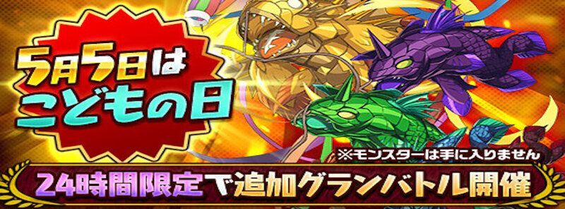 05月05日(金)18:00から05月06日(土)17:59までの24時間限定の特別グランバトルも開催されます。