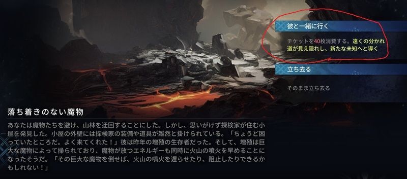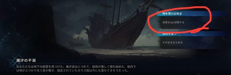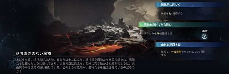 戦闘勝利時や、イベントの選択肢次第では、「栄誉」と「チケット」が獲得できます。