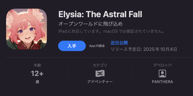 Elysia: The Astral Fallのリリース予定日はApp Storeによると2025年10月4日(土)を予定しているようです。