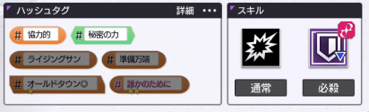 ハッシュタグ「秘密の力」は、登場時にパーティ全員のTPを1増やせる優秀な効果を持っており、特におすすめです。