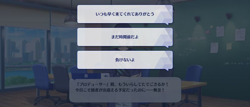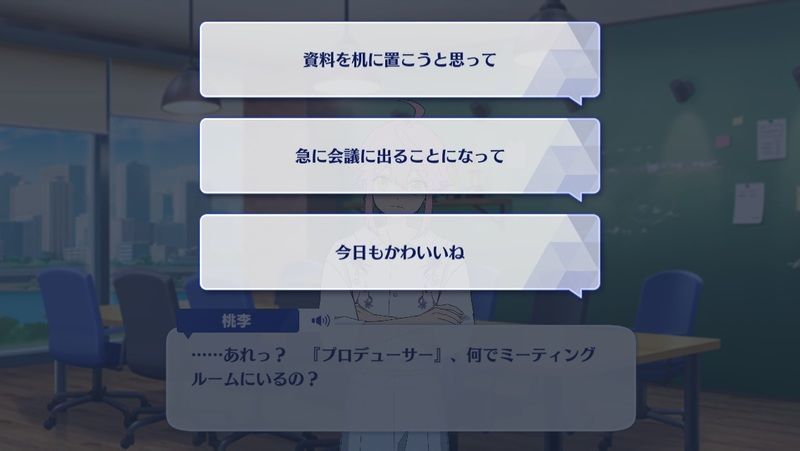 | ……あれっ? 『プロデューサー』、何でミーティングルームにいるの? | ||