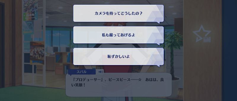 プレイヤーが会話に対して返事を選択することができ、アイドルの反応によって「アピールスター」など様々なボーナスを受け取ることができます。