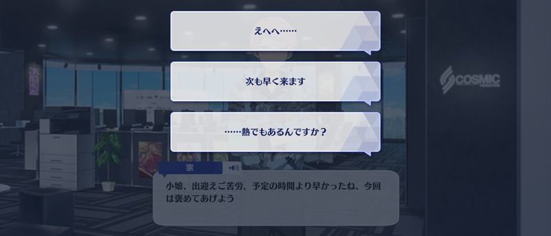 | ん? あれあれあれっ、(名前)ちゃんがいるね? コズプロの事務所に何の用? | ||