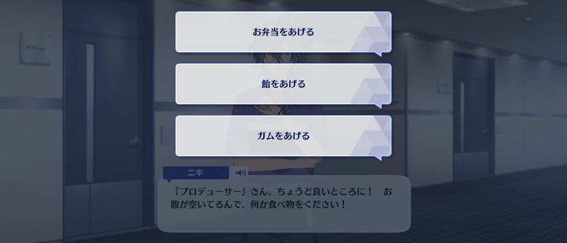 | 『プロデューサー』さん、ちょうど良いところに! お腹が空いてるんで、何か食べ物をください! | ||