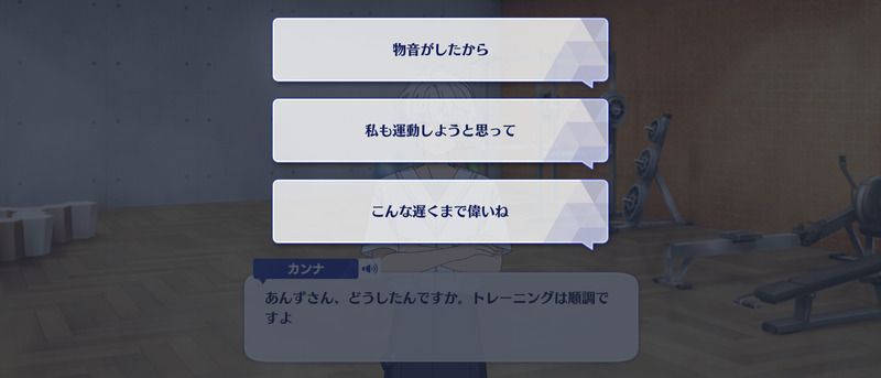 | (名前)さん、どうしたんですか。トレーニングは順調ですよ | ||