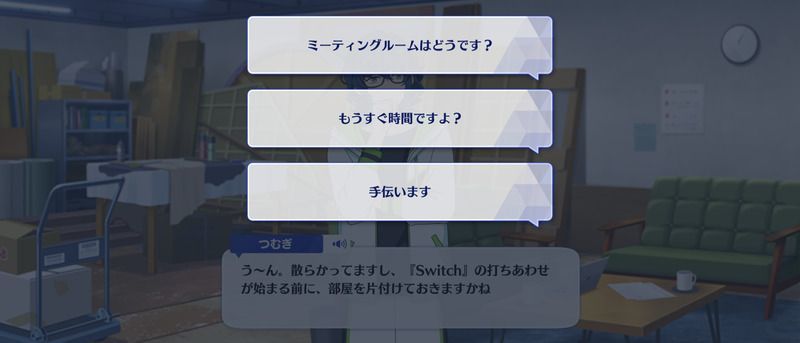 プレイヤーが会話に対して返事を選択することができ、アイドルの反応によって「アピールスター」など様々なボーナスを受け取ることができます。