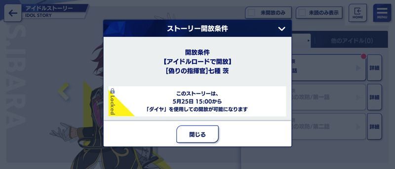 「アイドルストーリー一覧」を選択します