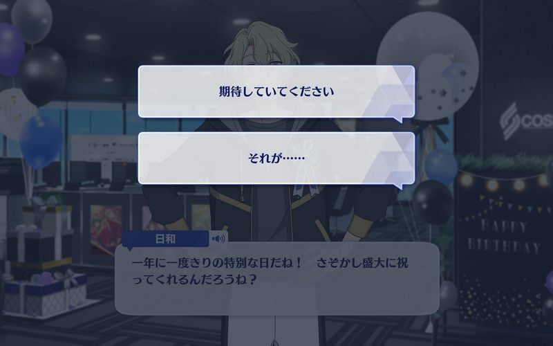 | 1 | 一年に一度きりの特別な日だね! さぞかし盛大に祝ってくれるんだろうね? | ||