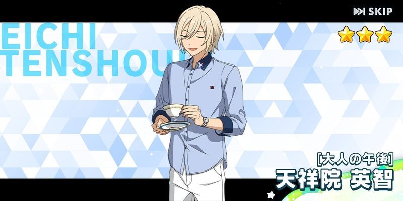 『あんスタ(あんさんぶるスターズ!!Basic)』の☆3[大人の午後]天祥院 英智のカード情報ページです。ステータスや追加日、アイドルロード情報などを掲載しています。