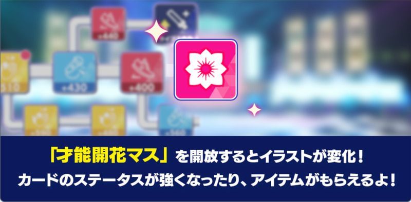 | クリア方法 | [もっとキラキラ!]明星 スバルのアイドルロードから「才能開花マス」を開放しよう! | ||