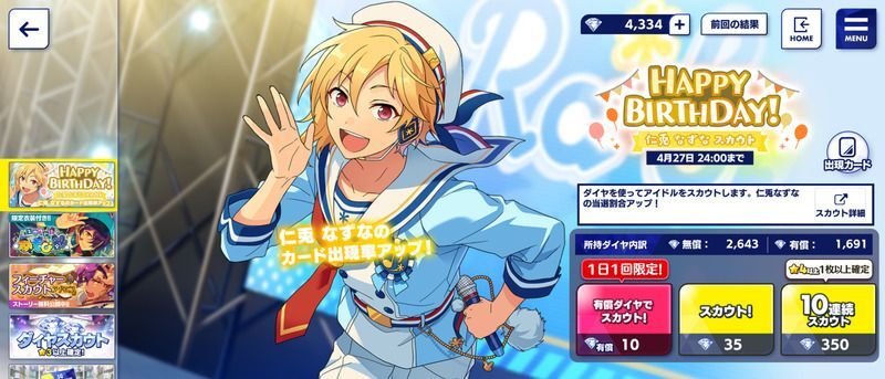 誕生日限定スカウト画面