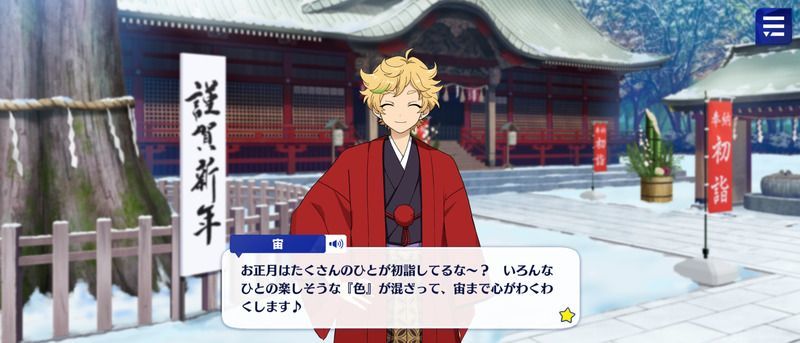 | 報酬 | ・ボイス「お正月のひとこと - 1」 ・ルーム衣装「紅い正月衣装」 | ||