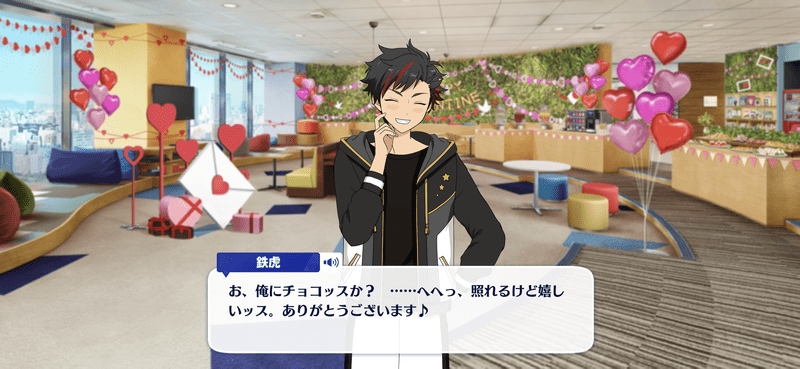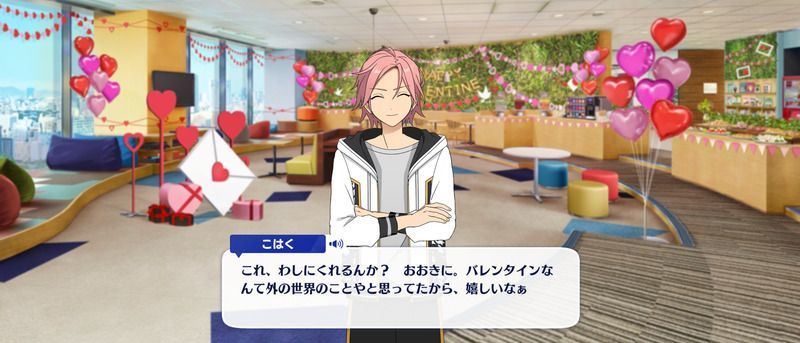 ※2021年02月10日 10:00 ~ 02月28日 23:59限定公開のバレンタイン限定マイルーム・アイドルルーム期間限定ボイスとは異なります。マイルーム・アイドルルーム期間限定ボイスについては、各キャラクターボイス一覧ページの「季節限定のマイルームボイス」をご確認ください。