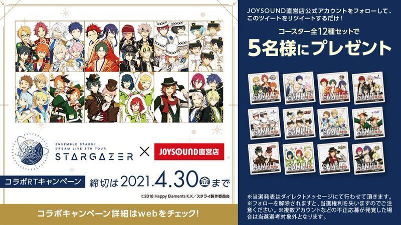 カラオケ「JOYSOUND(ジョイサウンド)」と「あんさんぶるスターズ!DREAM LIVE -5th Tour “Stargazer”-」コラボキャンペーン開催決定!