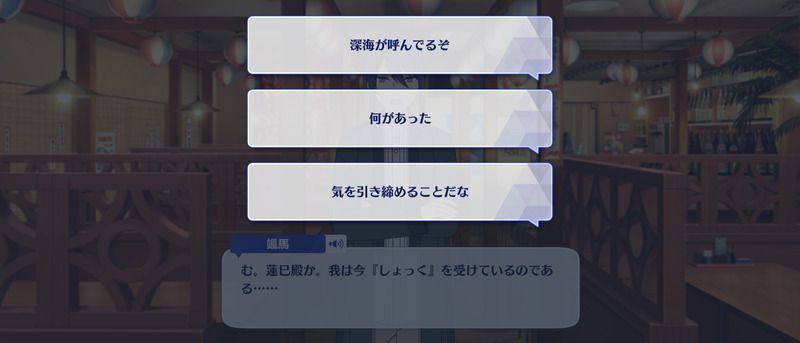 | 2 | む。蓮巳殿か。我は今『しょっく』を受けているのである…… | ||