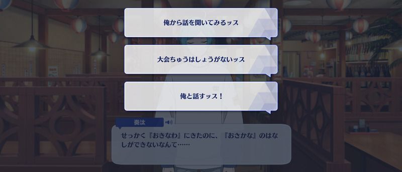 | 3 | ……せっかくの機会だし、俺らで近況でも話しあうか | ||