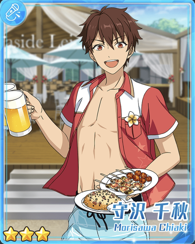 『あんスタ(あんさんぶるスターズ!!Basic)』★3[海の接客]守沢 千秋のカード情報ページです。ステータスや追加日、アイドルロード情報などを掲載しています。