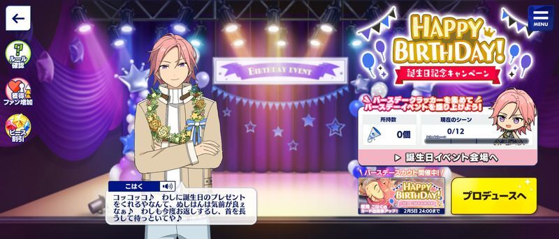 誕生日当日は、特設ページからアイドルのバースデーイベントで、誕生日をお祝いできます。