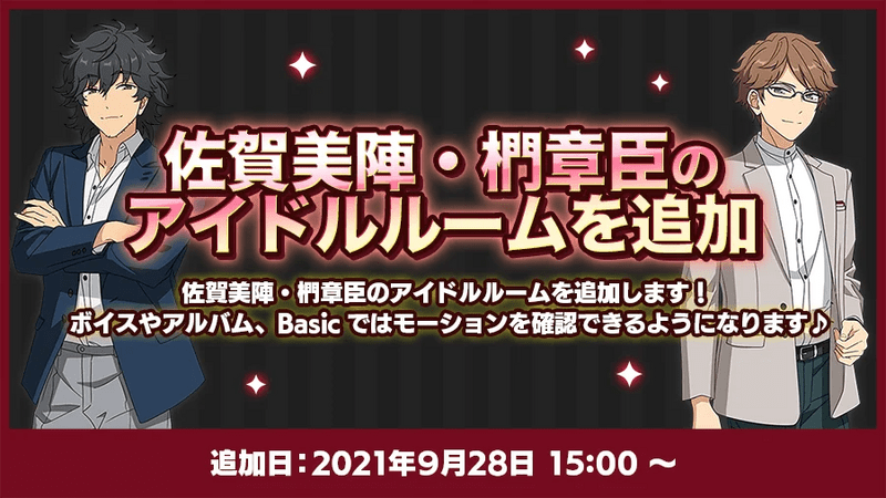 - 佐賀美陣・椚章臣のアイドルルームを追加