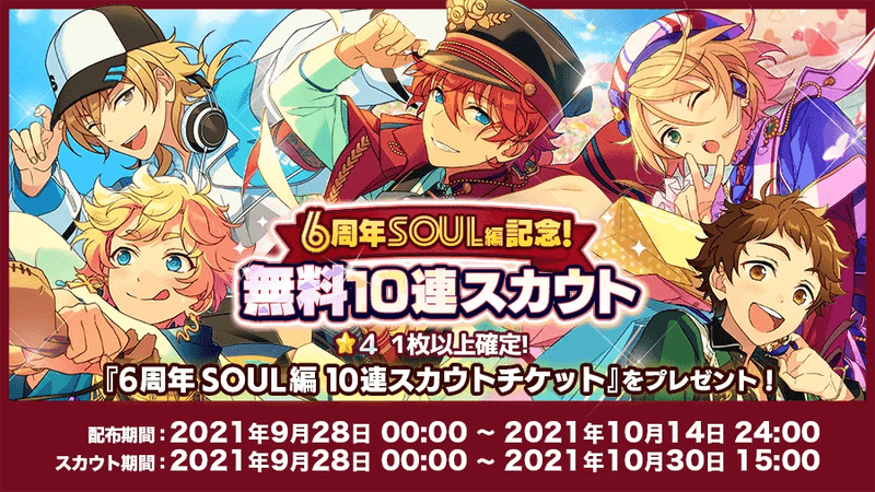 - 6周年SOUL編記念!無料10連スカウトプレゼント