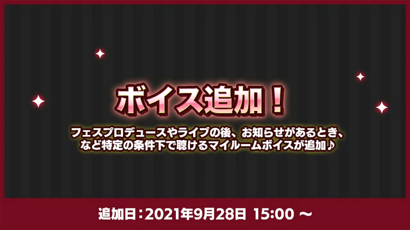 | 10月21日 | ボイス「六周年の挨拶(佐賀美 陣)」 ダイヤ×10 |