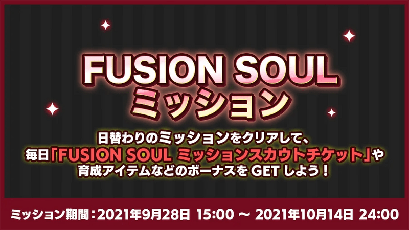 | チケット 配布期間 | 2021年09月28日 00:00 ~ 10月14日 23:59 ※ログイン日数は0時切り替えです。 |