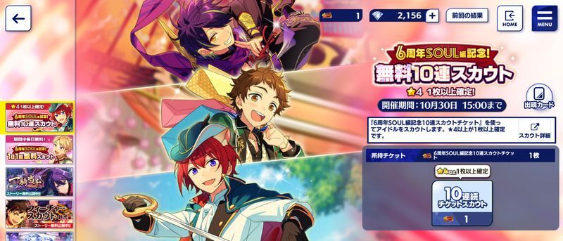 6周年SOUL編記念!無料10連スカウトプレゼント