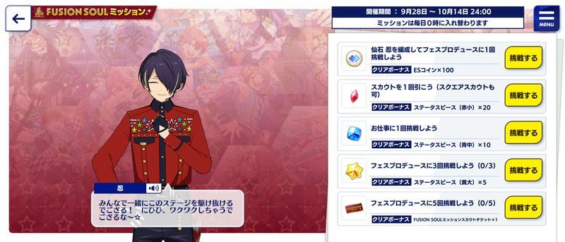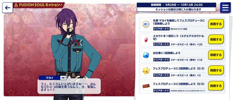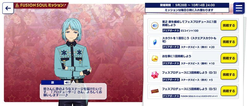 | 紫之 創を編成してフェスプロデュースに1回挑戦しよう | ||
